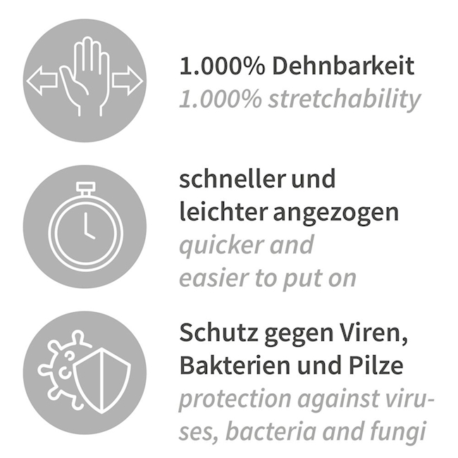 I guanti in neoprene Neo Stretch Pro sono guanti di alta qualità e sono particolarmente consigliati in aree in cui il tempo è essenziale. Il materiale estremamente elastico consente di risparmiare molto tempo nell'indossare e togliere i guanti monouso. Non si impigliano, non si aggrovigliano e non si attaccano: ideali per medici, laboratori o nell'industria farmaceutica.