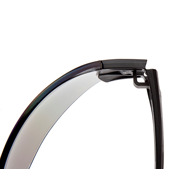 - La lente monoblocco in policarbonato curva "avvolgente" con ponte nasale integrato offre un'ottima protezione in tutte le direzioni e una visione panoramica.